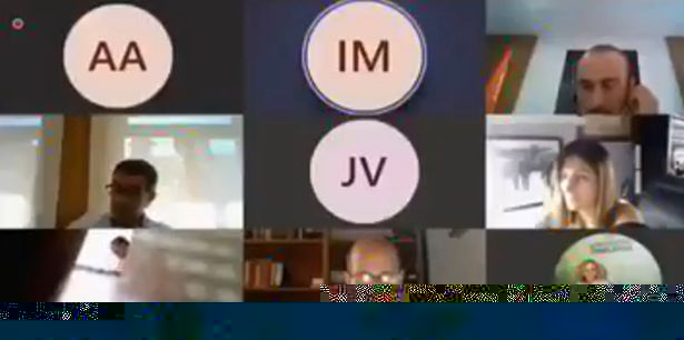 The colleagues attempt to ignore him at first but then ask if they can remove him from the call to spare him further embarassment.